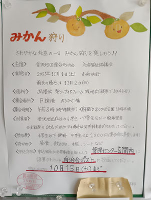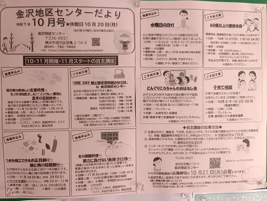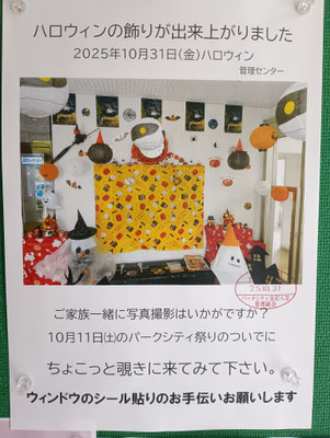 ピロティー・管理センターの掲示板(地区のイベント)(10月17日更新。掲示期間が過ぎたら削除します)