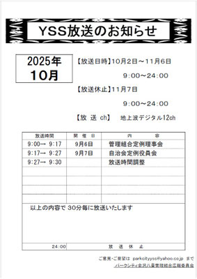 祝祭日を除く毎週土曜日の午前10時より管理センター1階右奥のYSSスタジオでも相談を承っていますが、行事等で不在の場合もありますので、メールでご一報いただければ幸いです。