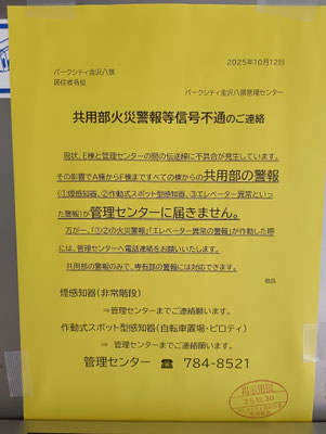 各階段の掲示板(10月17日更新。掲示期間が過ぎたら削除します。各棟個別のチラシ、透明フォルダ内のパンフ、音楽鑑賞会の開催案内は掲載していません。地域の催し物は「ピロティの掲示板」に移動しました)
